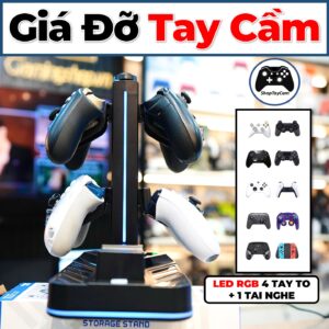 Giá Đỡ Tay Cầm Chơi Game LED RGB 4 Tay Cầm + 1 Tai Nghe Bản To Cực Đẹp Cao Cấp cho PS4 PS5 Xbox Flydigi Switch