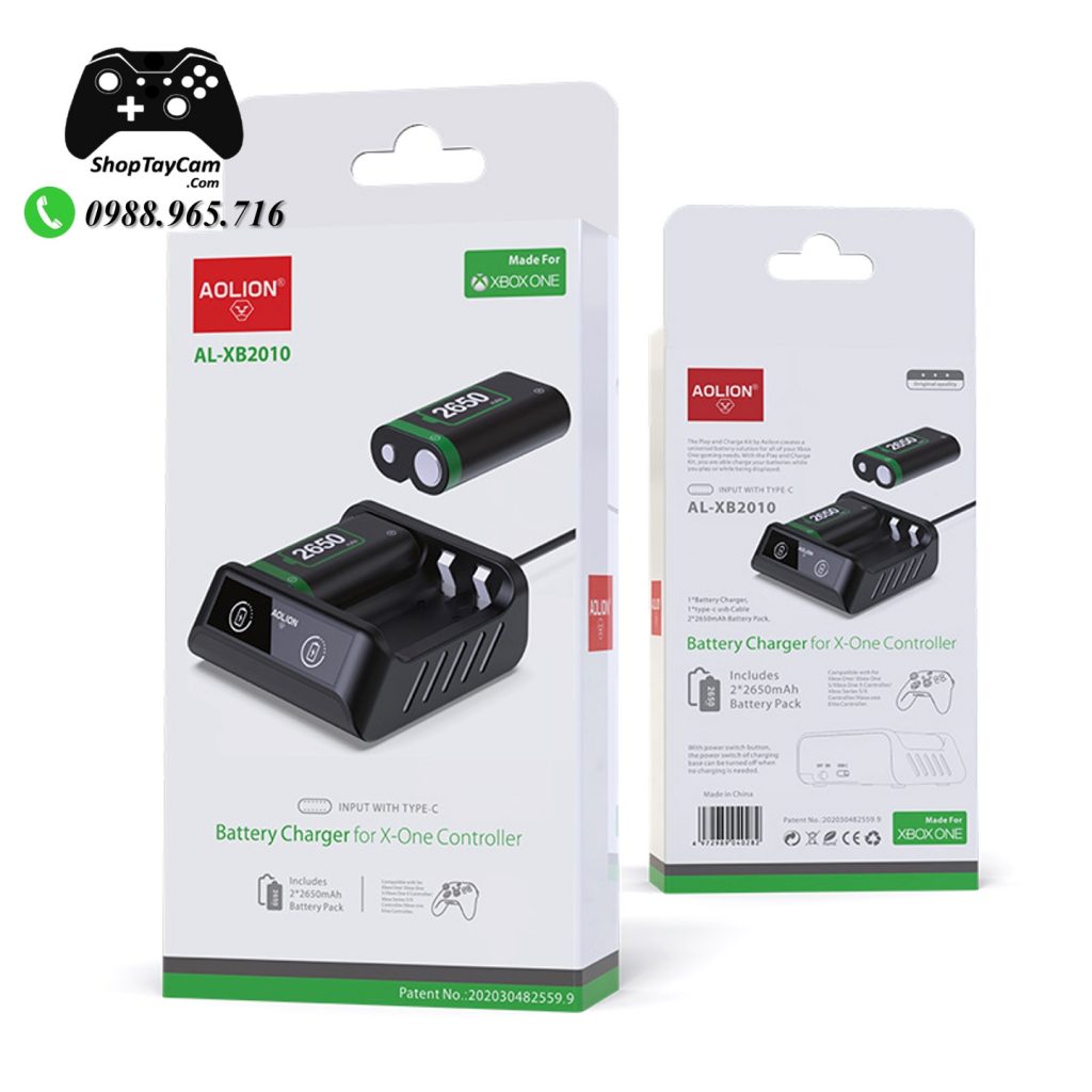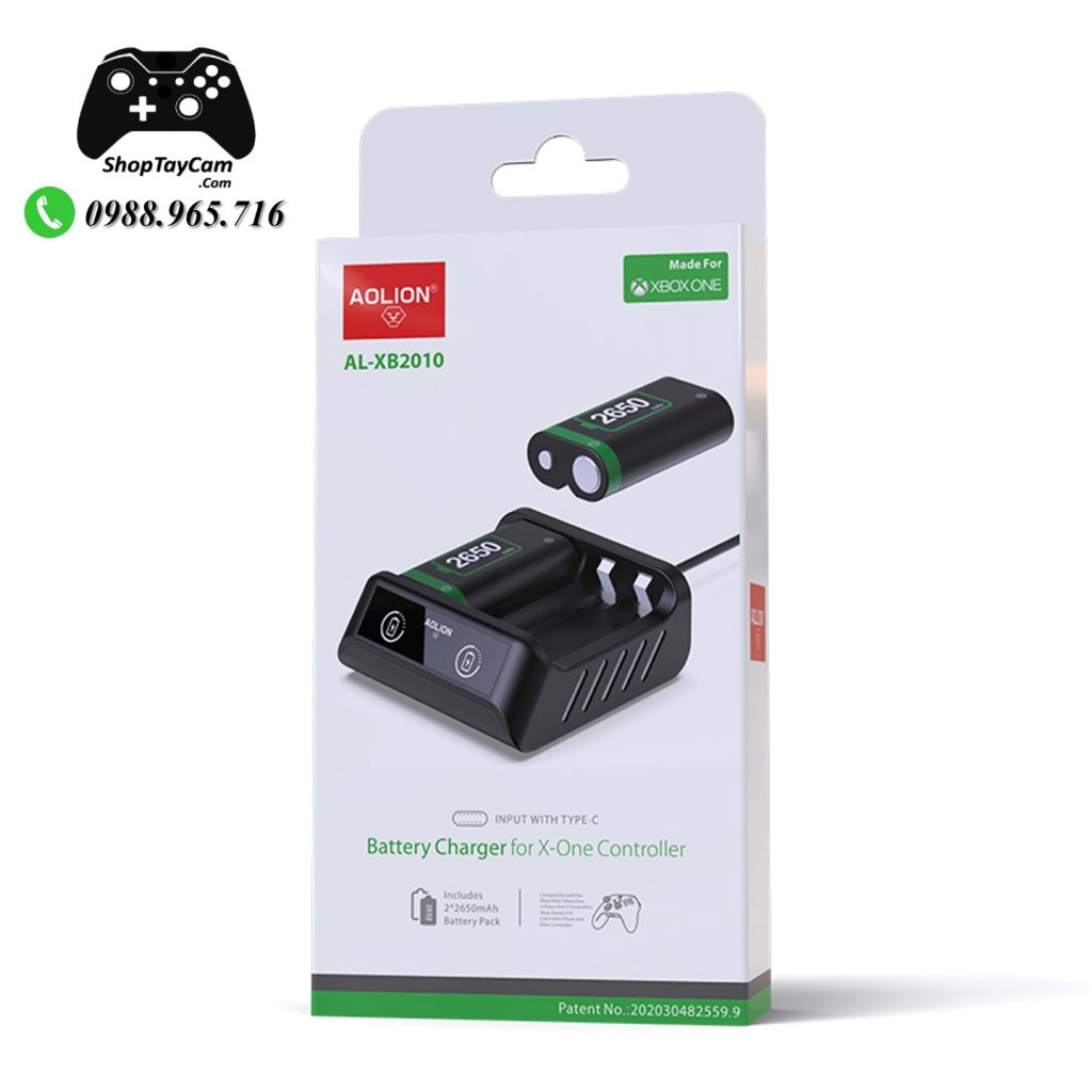 Bộ Pin Sạc 2 Pin Sạc Rời Cho Tay Cầm Xbox One S / Xbox One X Controller Hàng Chính Hãng AOLION AL-XB2010 2650mAh