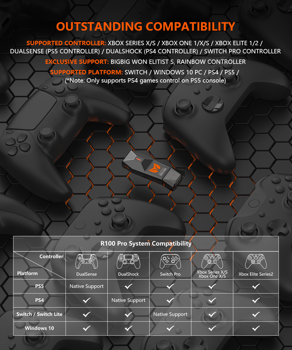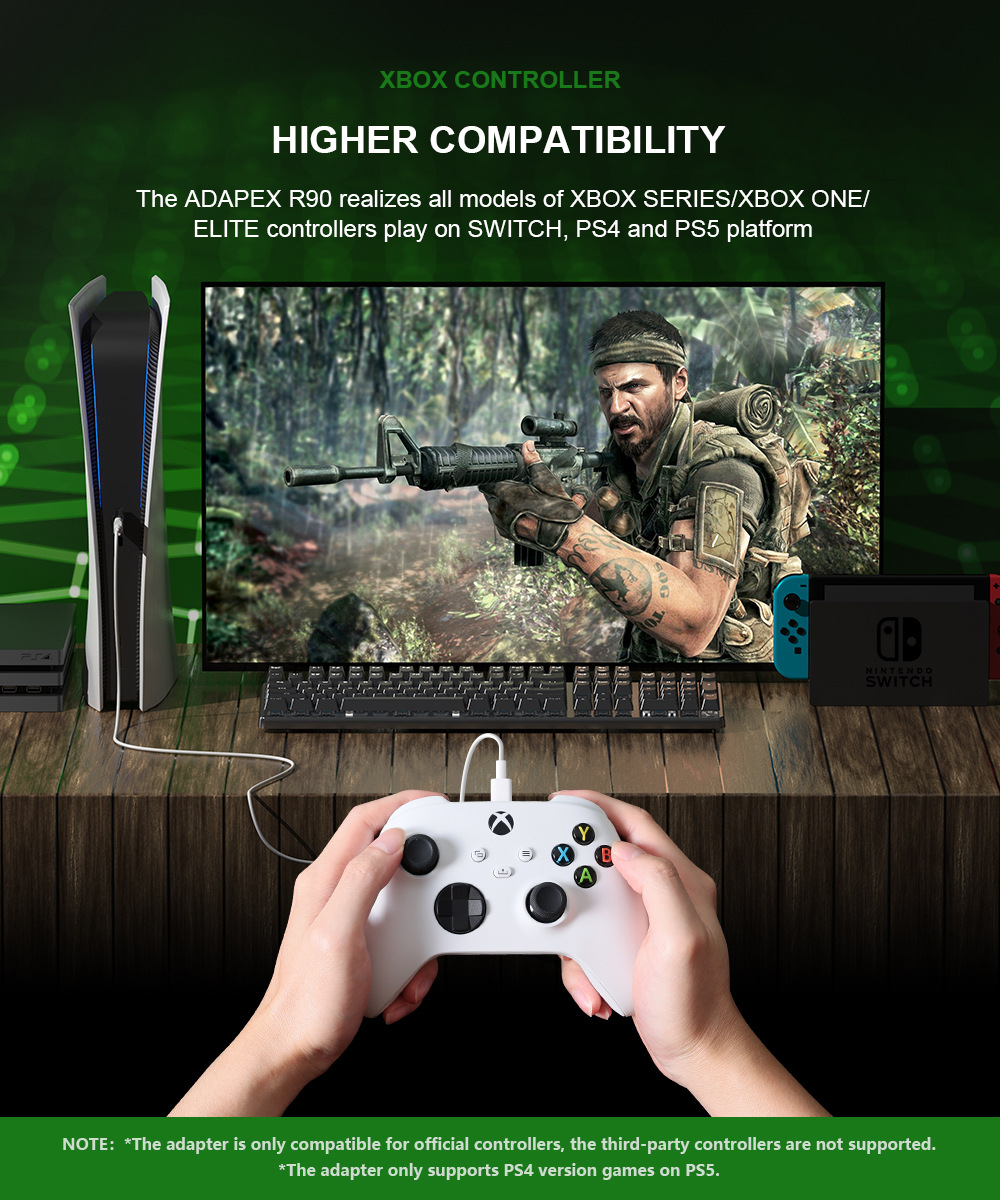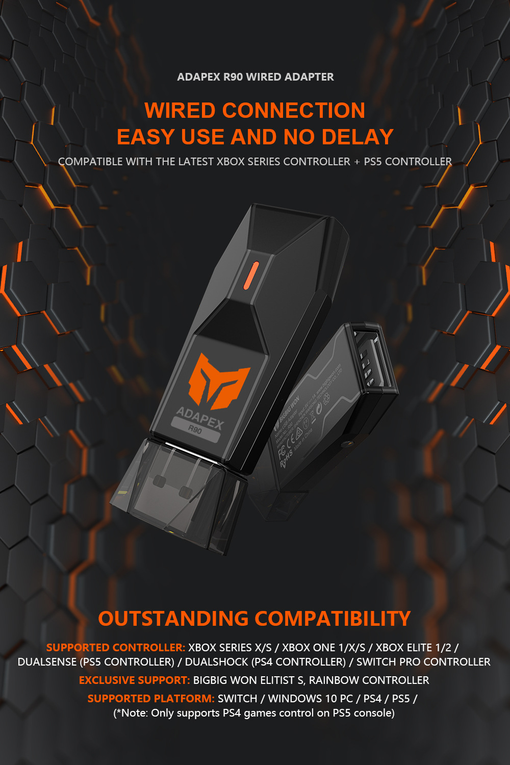 USB BIGBIG WON ADAPEX R90 Wired Adapter Cho Tay Cầm PS4, PS5 Xbox One S / X, Pro Controller